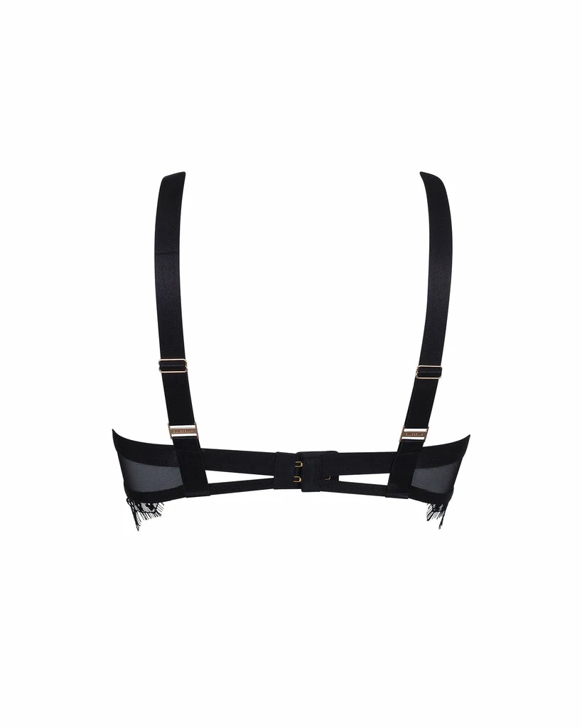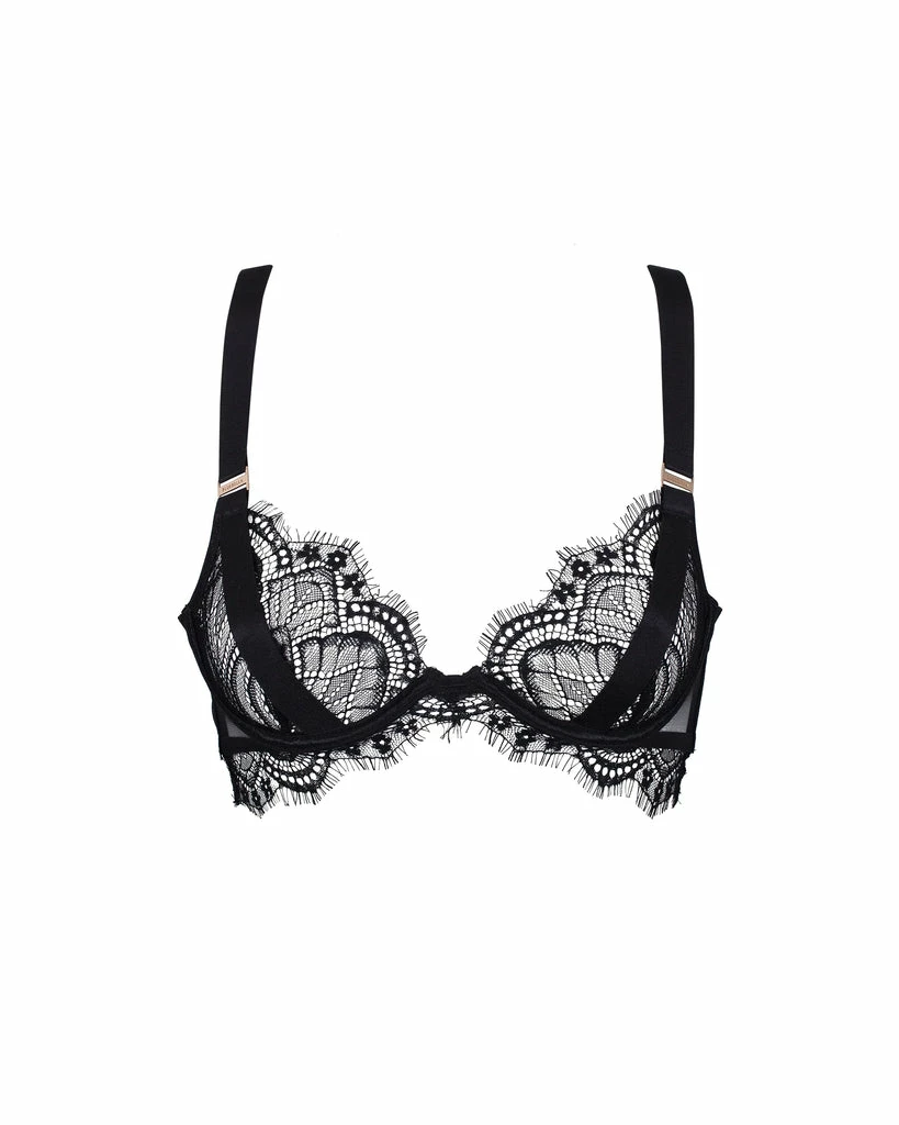Bring a fanciful touch to your lingerie collection with the bold choice that is the Alessia bra. This intricate number marries seductiveness with elegance in its sheer, lace-adorned cups, while the gold-tone hardware lends an opulent finish to the adjustable straps. Reach for the matching panty or thong to complete a look that empowers from underneath.