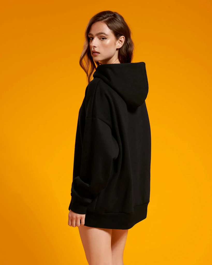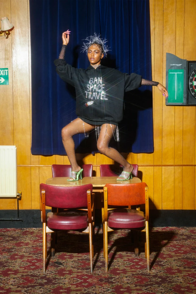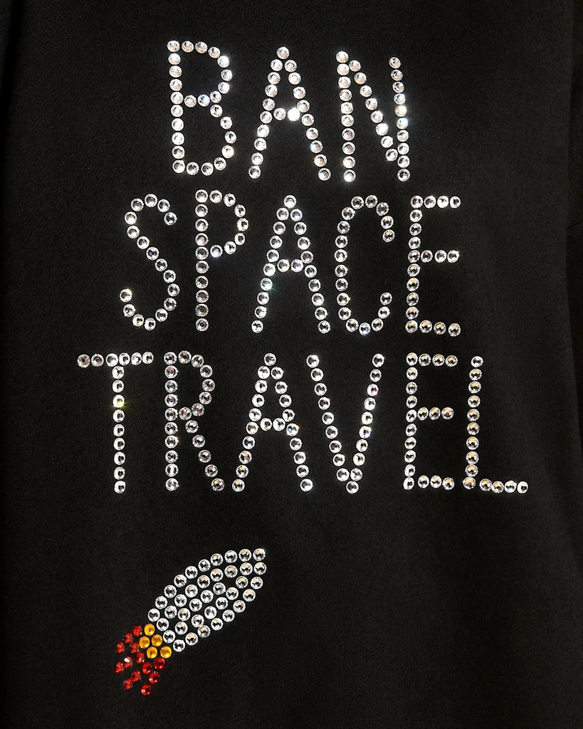 Designed by the celebrity-favorite couture visionary Ashish and brought to life with Bluebellaβs spirited direction, our latest limited-edition collaboration is the best way to express your individuality through unapologetic sparkle and unique silhouettes. Proving that our design expertise extends beyond the realm of lingerie, this cutting-edge hoodie offers stylish nonchalance and playful glamour that come courtesy of its oversized fit and dazzling embellishments. The Ban Space Travel slogan and a whimsical rocket motif are guaranteed to grab attention anywhere you choose to wear it and however you decide to style it.