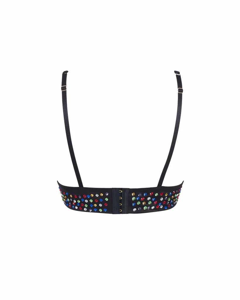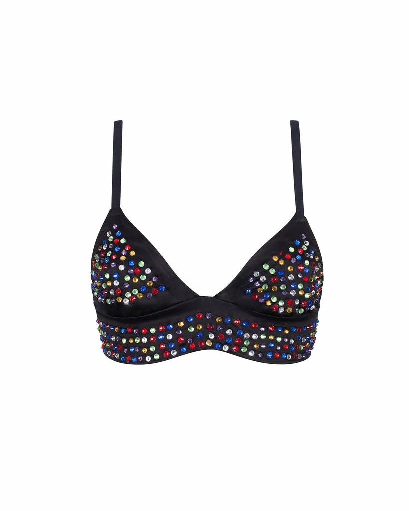 Designed by the celebrity-favorite couture visionary Ashish and brought to life with Bluebellaβs spirited direction, our latest limited-edition collaboration is the best way to express your individuality through unapologetic sparkle and unique silhouettes. This fashion-forward bralette bridges the gap between crop tops and bras, delivering a look thatβs at once eye-catching, sleek and distinctively modern. The flattering triangle cups and wide underband are crafted in sleek satin and punctuated by countless multicolored diamantes for an unforgettable finish that stands out boldly however you decide to style it. Presented with an exclusive Bluebella x Ashish garment bag.