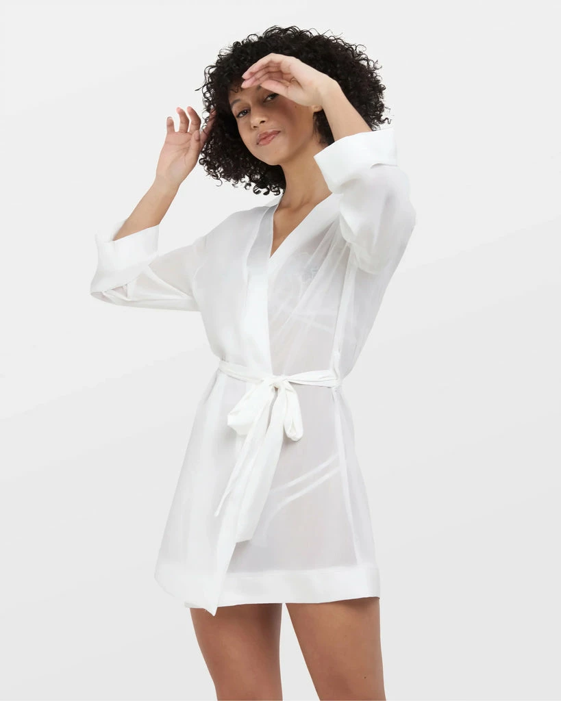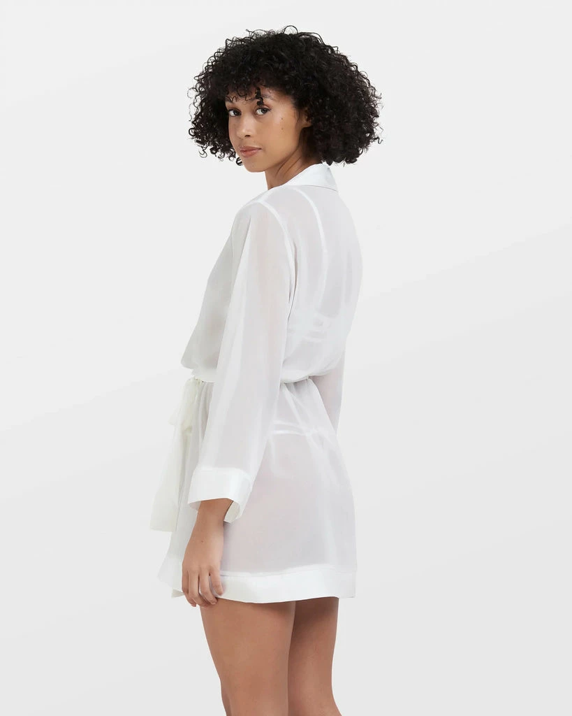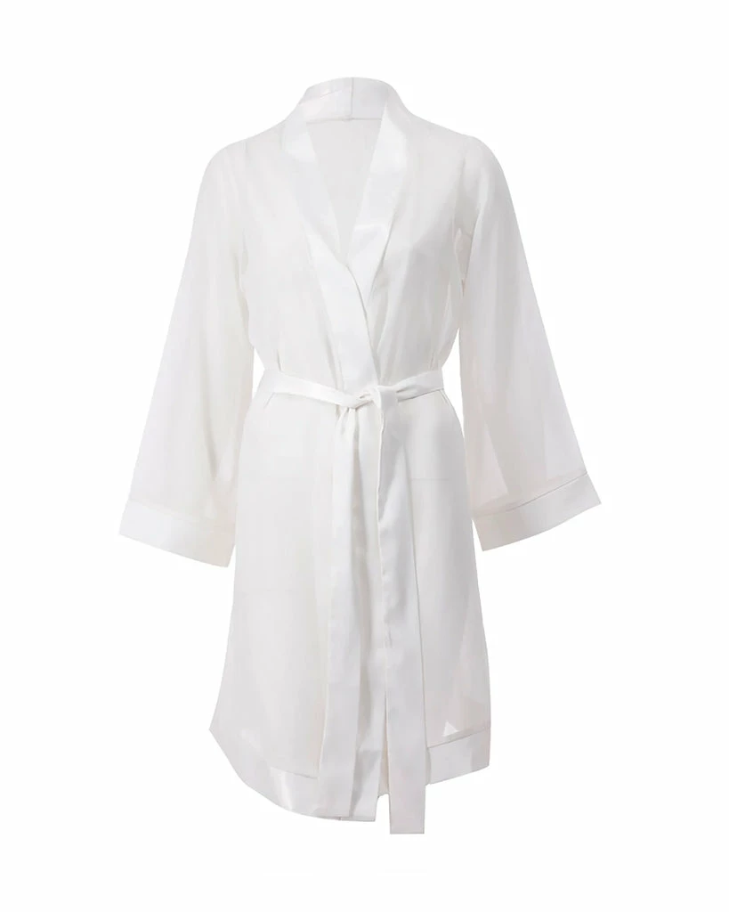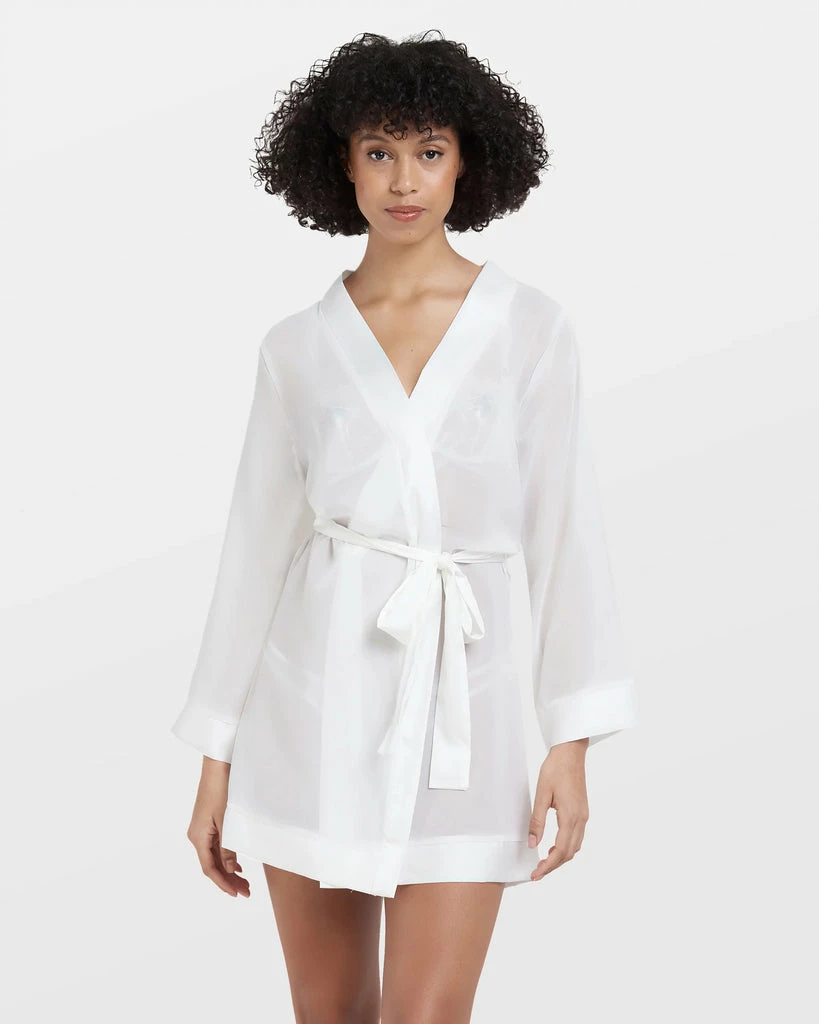 The Bluebella Chiffon Kimono is a must-have item to complete your favourite lingerie looks. Edged with a deep satin trim around the robe and cuffs, the kimono also features a luxurious satin waist tie.