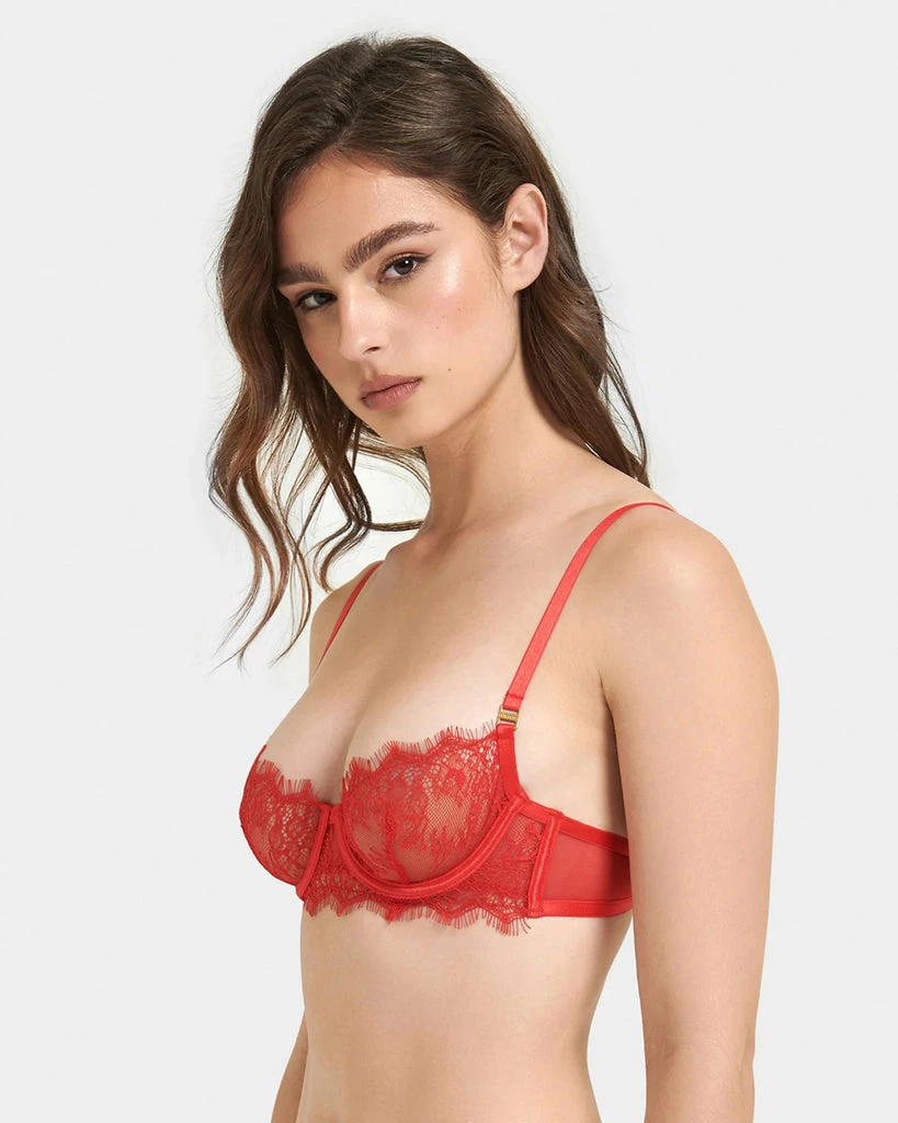The Grace bra embraces femininity in its purest form, catching the eye of lingerie lovers with intricate embroidery and charming eyelash trims. The flattering balconette shape creates a beautiful shape underneath any top you style it with, but nothing can compare to the impact it makes when paired with the matching pieces from the Grace collection. Make sure to bag them all to cover all your styling needs.