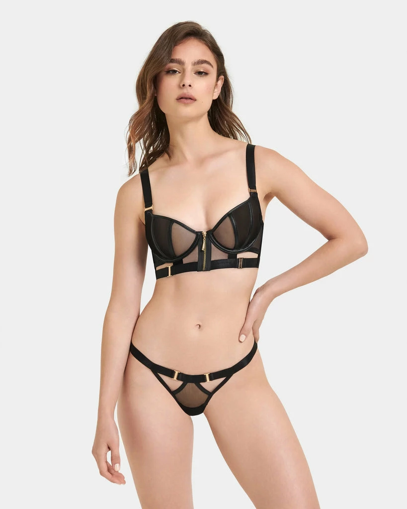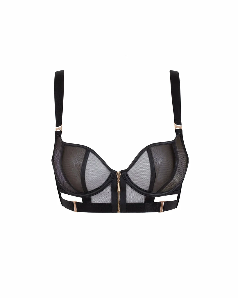 A hybrid of a supportive bra and fashion-forward crop top, the Malina bra pushes the boundaries of lingerie with its innovative shape and unexpected elements. This unique design flatters your silhouette with supportive wiring, while the cutting-edge zip detail to the front secures a distinctively edgy finish. Pair with the matching Malina panty to create an eye-catching lingerie look.