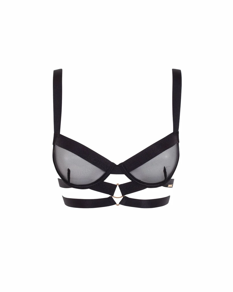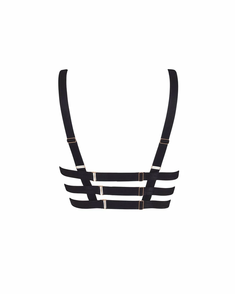 Minimal yet able to leave an unforgettable impression, the Miriam bra delivers a contemporary display of wide, directional straps that flatter your shape. Elevated further with Bluebella’s signature gold-tone hardware, this clean-lined style radiates confidence and seduction from afar. Why not experience the full strappy fantasy and pair it with the matching pieces from the Miriam collection?