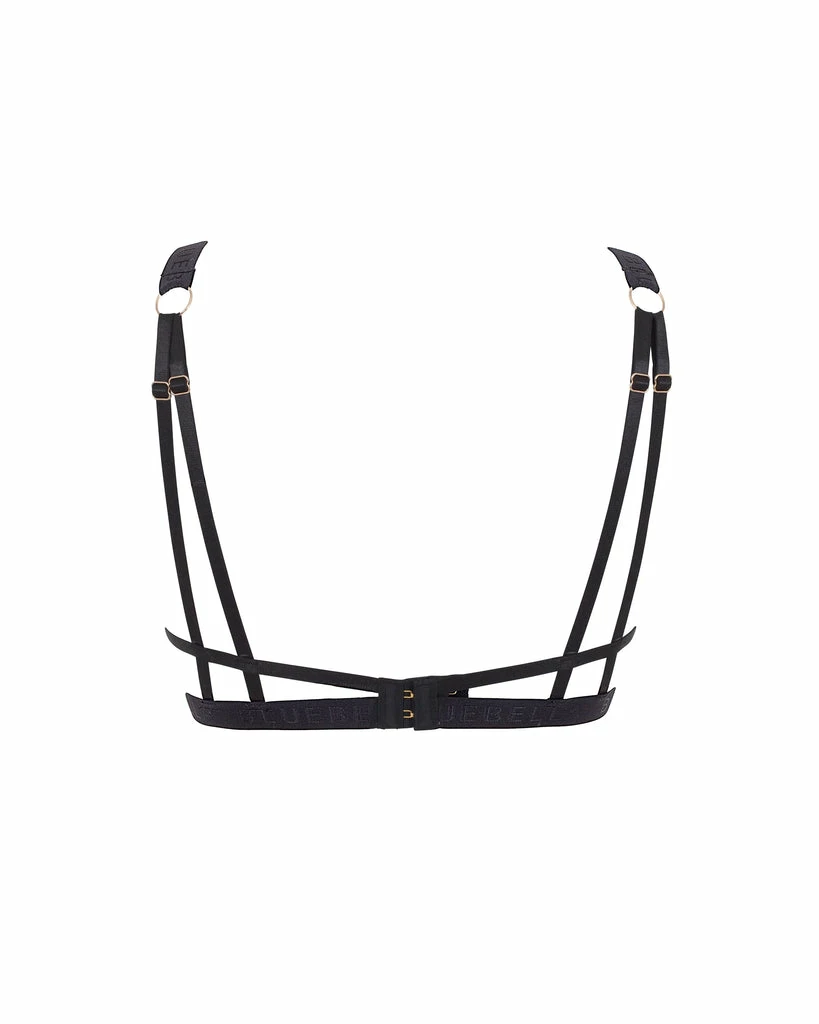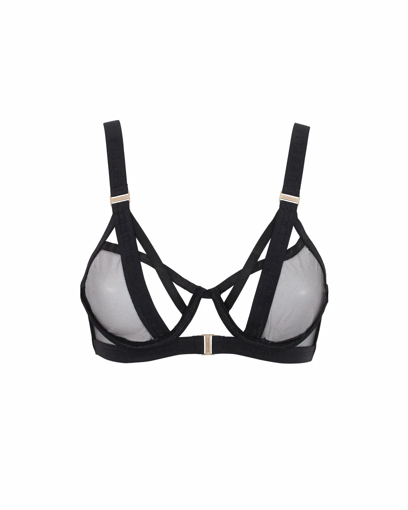 Presenting an immaculate vision of sculptural chic, the Oslo bra is a piece to take on the world in. Bold, directional straps and branded elements work with sheer mesh and polished hardware to create a true power piece. Bring your ultimate lingerie fantasy to life styling this sleek number with the rest of the Oslo collection.