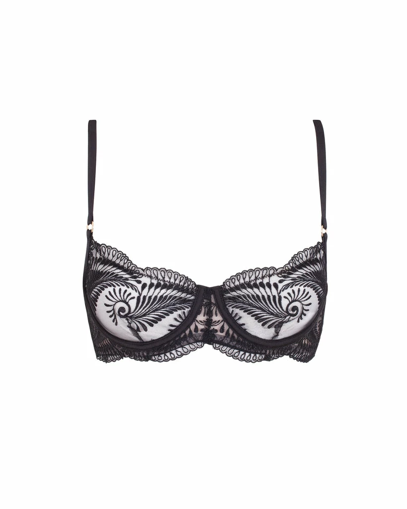 A masterclass in intricate embroidery, the Rafaela bra blurs the line between lingerie and art with its elaborate and unique design. The chic balconette bra offers an abstract display of swirls that catches the eye of whoever wants to make a statement with their lingerie. Impressive enough to wear on its own, this exceptional piece will feel most at home when styled with the other Rafaela pieces.