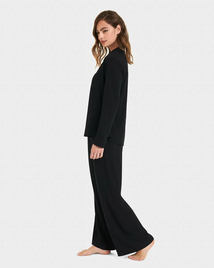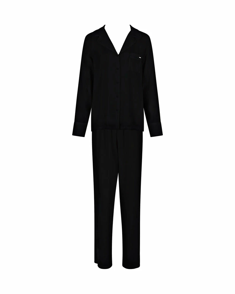 Simplicity and timeless elegance meet in your new favourite pajama set: the Tarcon. This sleek duo reimagines traditional nightwear cues with a modern approach and soft, responsibly sourced viscose. From the loose, comfortable cut to the perfectly executed details like the fabric-covered buttons, everything about this set embodies everyday luxury.