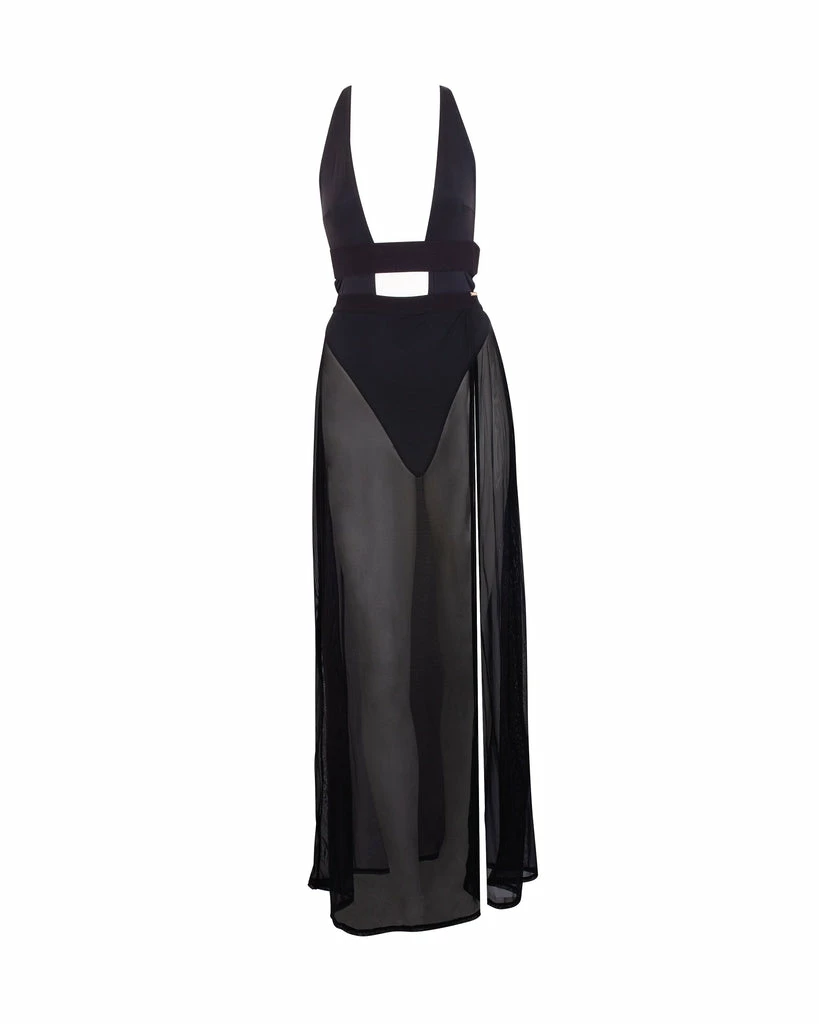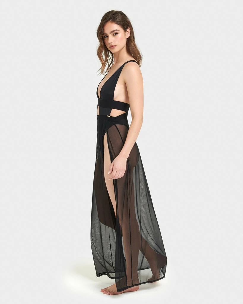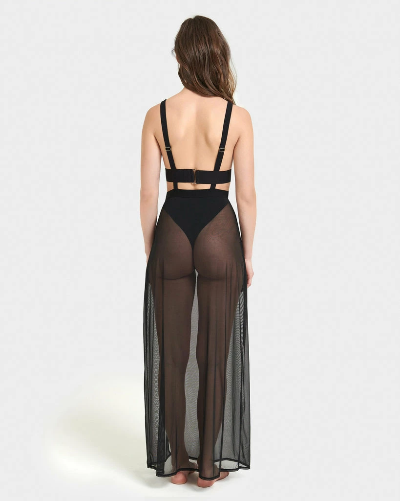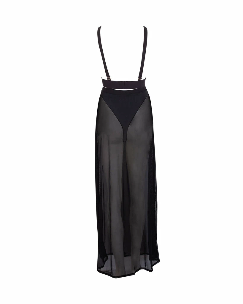 The Topaz chemise is an utterly feminine offering for whenever you need a solid dose of sultry elegance, toeing the line between lingerie and daywear. A dramatic, plunging neckline expertly complements an alluring, sheer skirt, while the wide straps and built-in panty make it thoroughly wearable. Why not sign it off with a touch of red on the lips to amp up the seductive undertones?